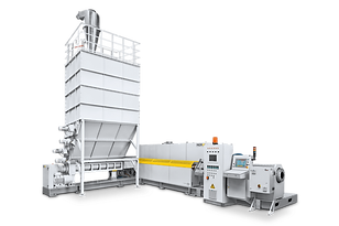 Additives such as color pigments, CaCo3, compatibilizers can be added to the material flow in a process-controlled manner. Dosing systems for pellet and/or powdered additives are available.
